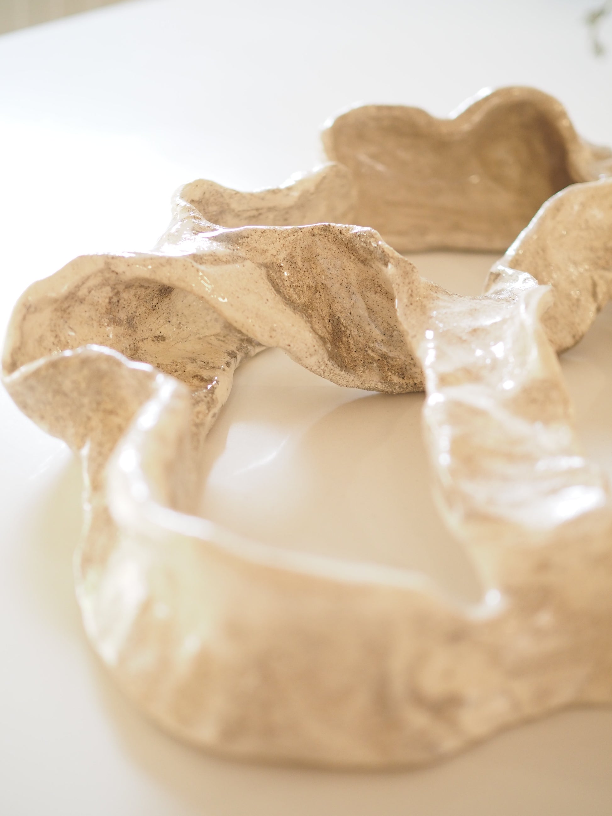 Veggskulpturen "Ro", handler om å skape en rolig atmosfære i hjemmet ved hjelp av en harmonisk og formfull veggskulptur. Alle veggskulpturene er håndlaget i en marmorert steingodsleire (to leiretyper) og brent til 1240 grader. De har en blank glasert overflate, og er alle unike og noe ulike selvom formspråket er tilnærmet likt.